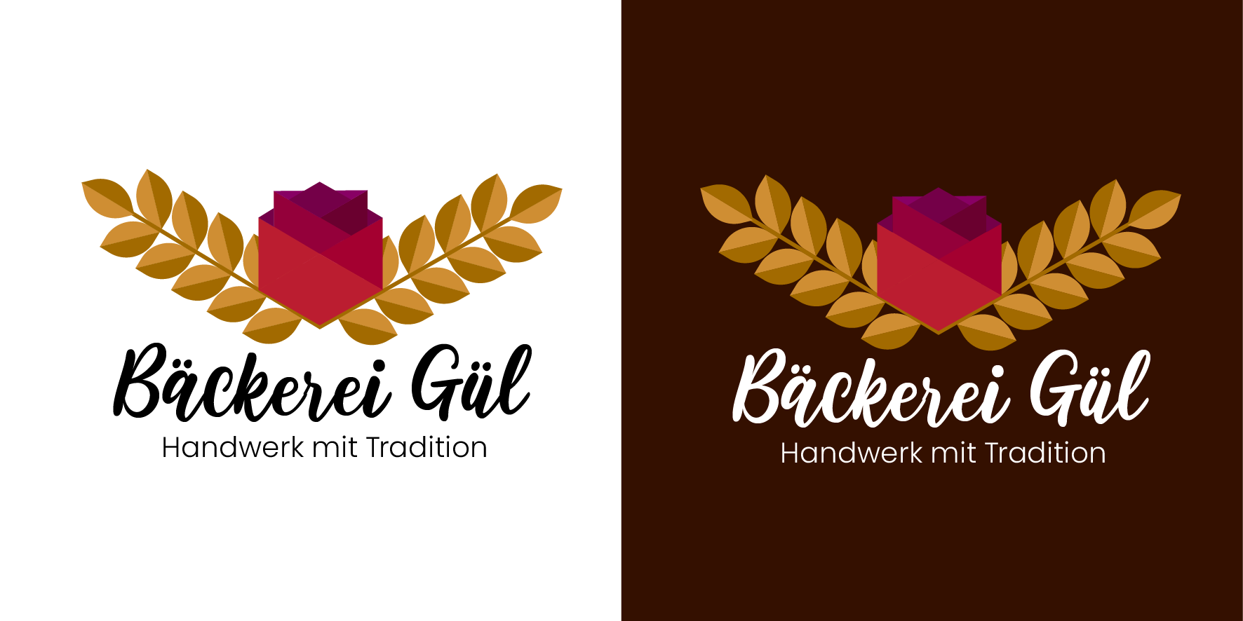 Kunden-Briefing: “Das Symbol Rose (=Gül) muss im Logo gezeigt werden. Farbe rotton (aber kein blutrot, das war bis dato die CI Farbe), muss klar, sympathisch sein und die Tradition des Bäckerhandwerks vermitteln.